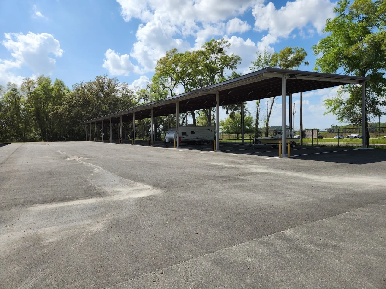 Secure RV and boat storage in Archer, FL, offering 24/7 access, covered and uncovered spaces, 24/7 surveillance, electric hookups, dump station, and more. Find us 17469 SW Archer Rd. Conveniently located near I-75, Gainesville, and the Gulf. Call (352) 574-4226.